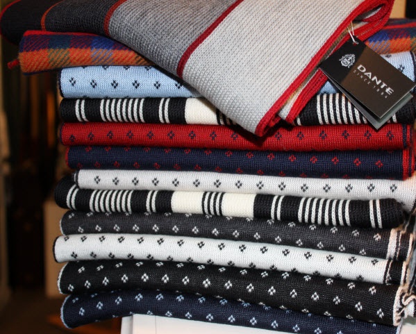 collection of fine mens accessories, including Johnstons of Elgin and Dante scarves.